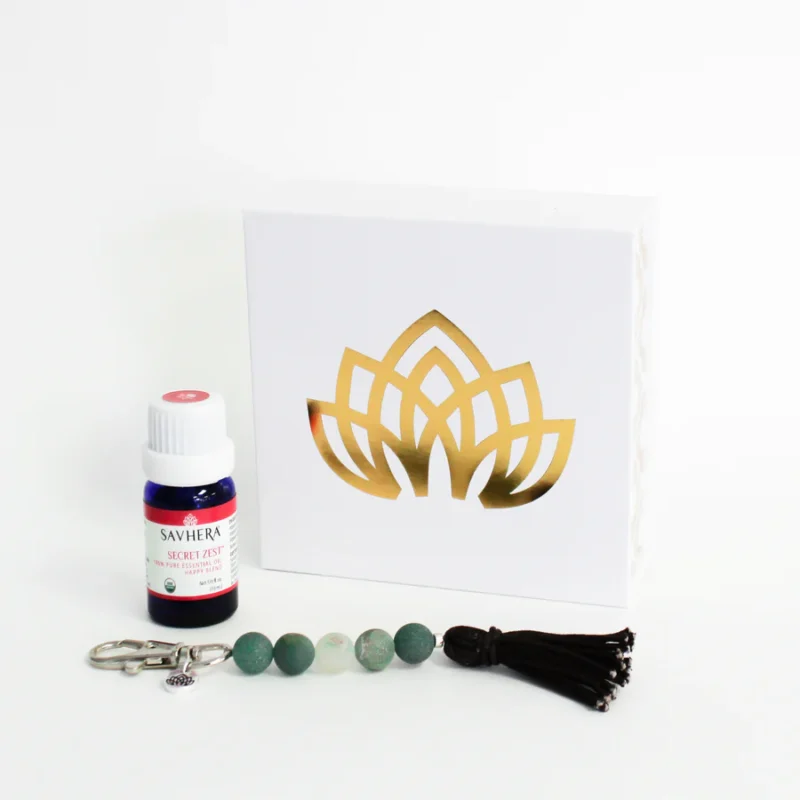 Delight the yogi in your life with this survivor-made gift set! It features our essential oil-infused yoga mat spray with our hand-sewn yoga strap and a zippered pouch. This strap can be used to carry your yoga mat AND to assist with stretches thanks to the loops on the end!